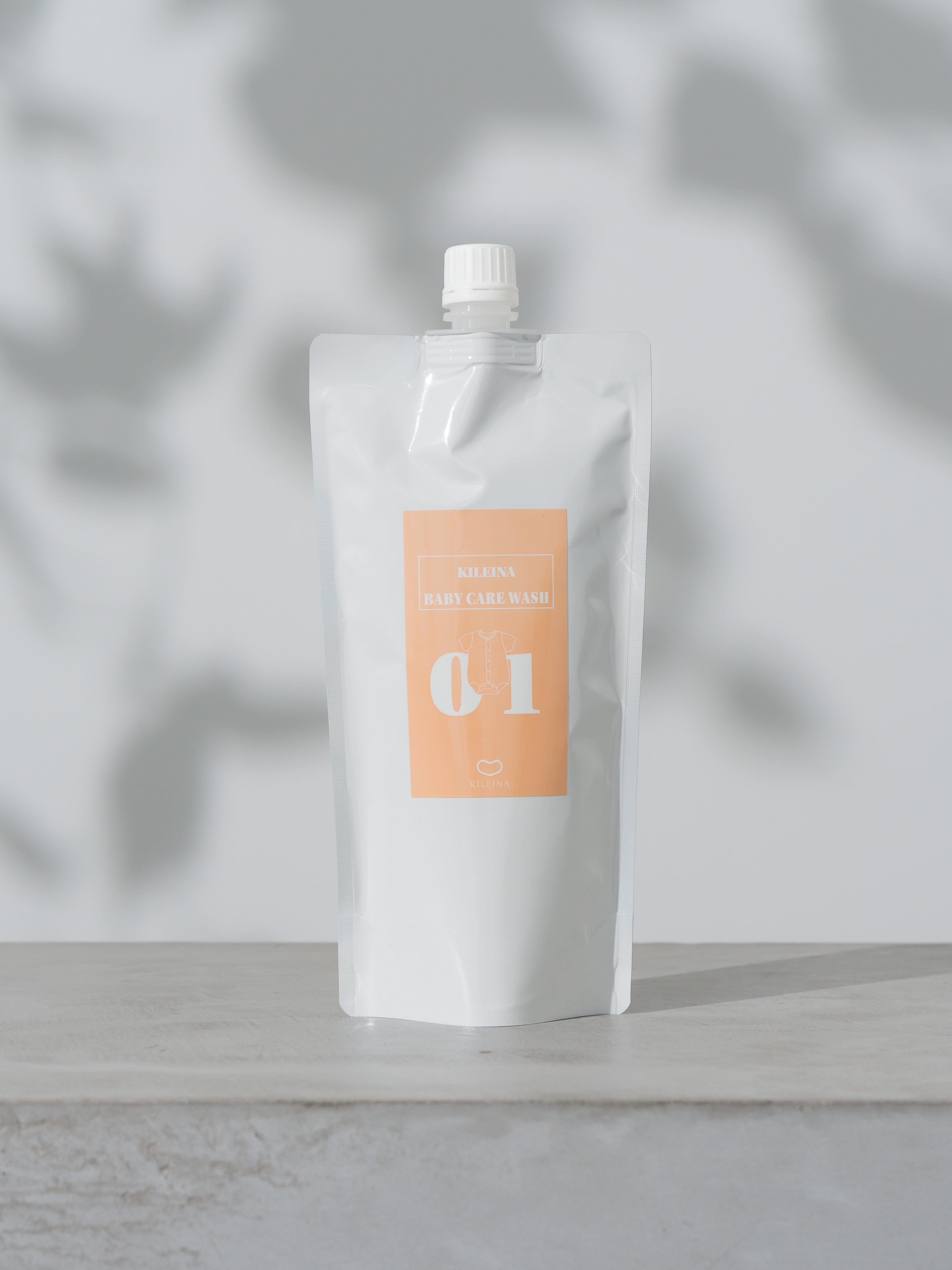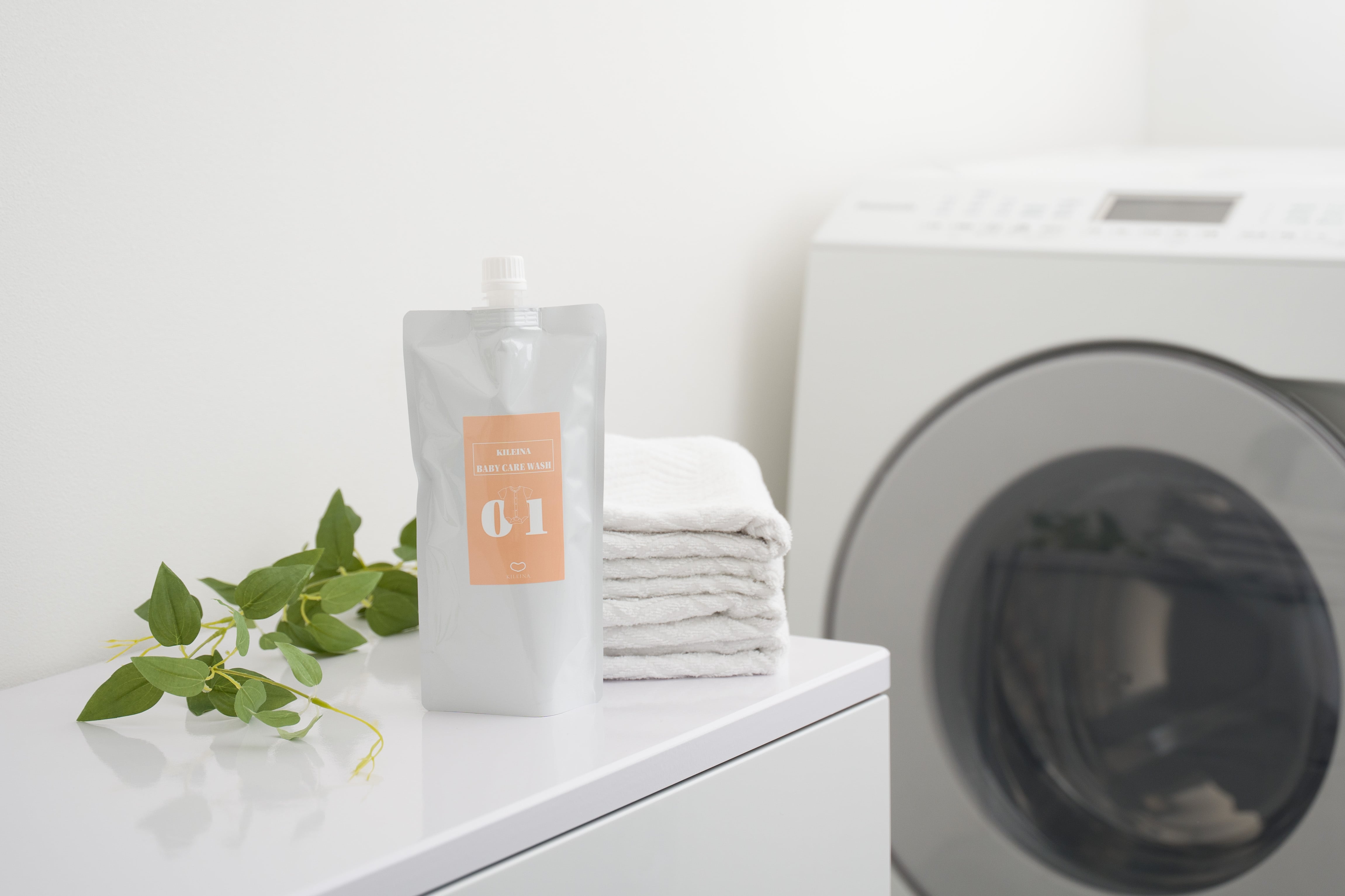 赤ちゃんのための優しい洗濯洗剤『KILEINA BABY CARE WASH 01』は、敏感な肌を持つ赤ちゃんにも安心してお使いいただけます。